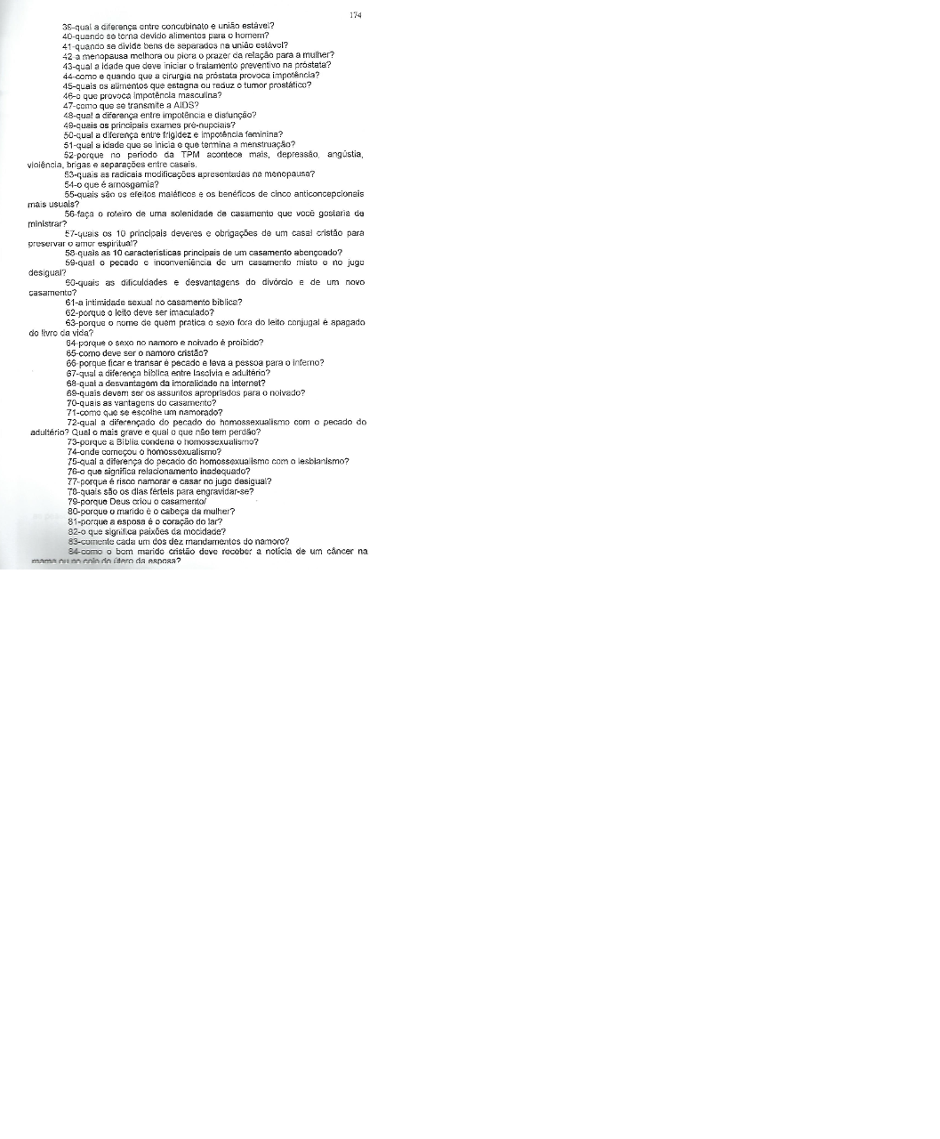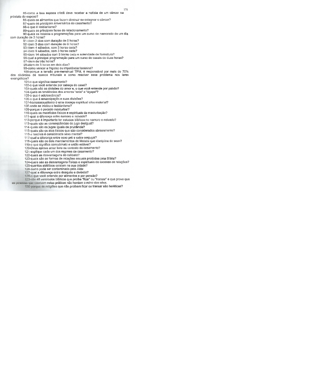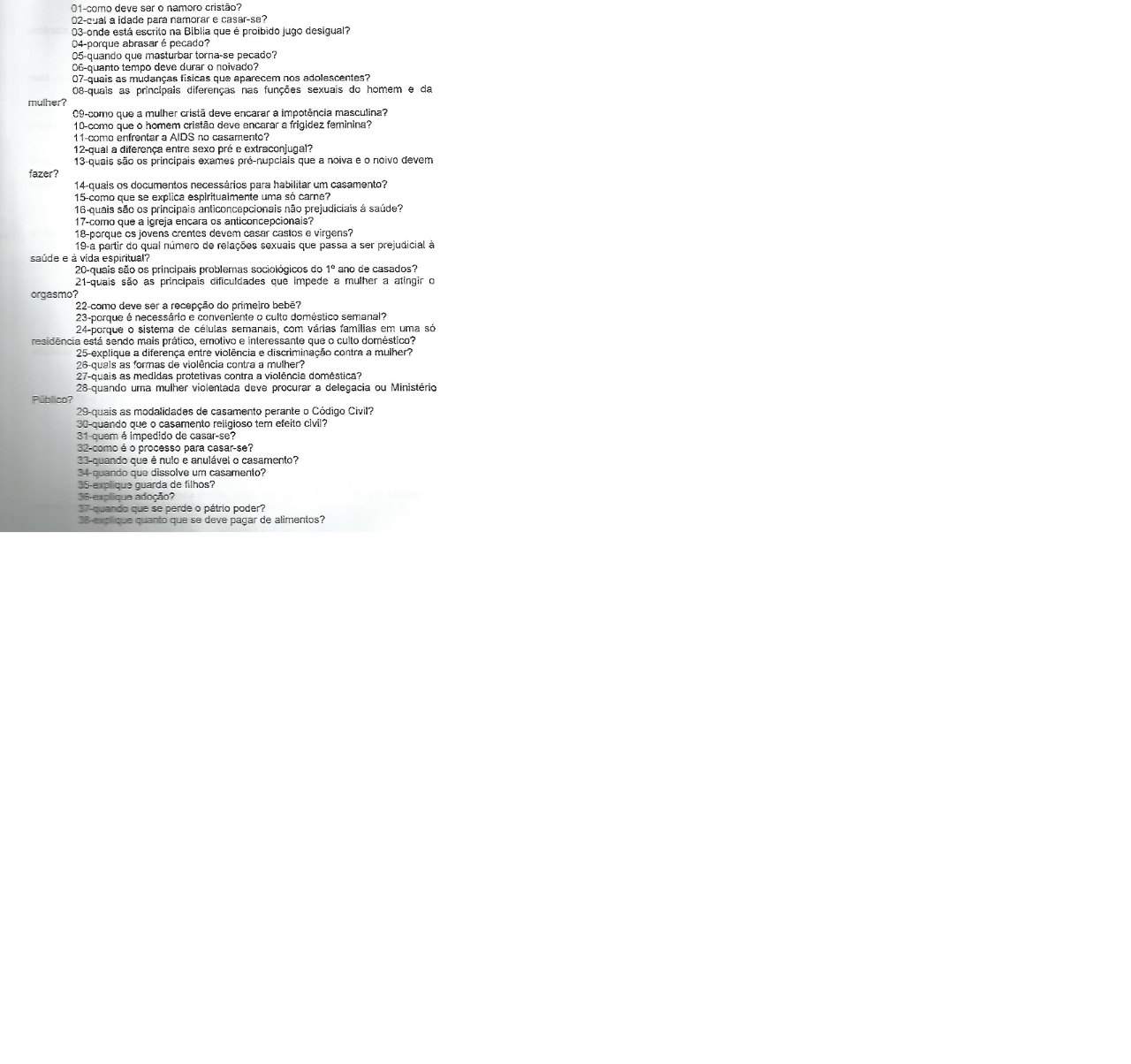 QUESTIONÁRIO DO CURSO DE NAMORO, NOIVADO E CASAMENTO